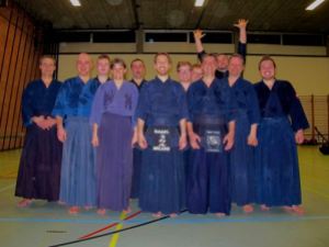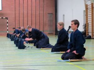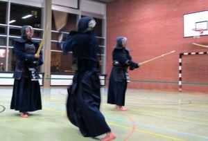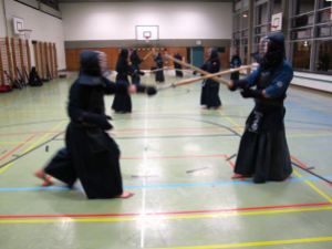 Es ging mit einem Kiai Lauf los, nachdem alle Shinais in der Hallenmitte im Kreis abgelegt waren. Danach wurde traditionell das Aufwärmprogramm mit Sprüngen, Dehnungen, Hüft-, Torso- und Schulterübungen durchgeführt. Weiter ging es mit Suburis jeglicher Art (10, 20, 30, 40,….) und führte abschließend zu folgendem Ergebnis: